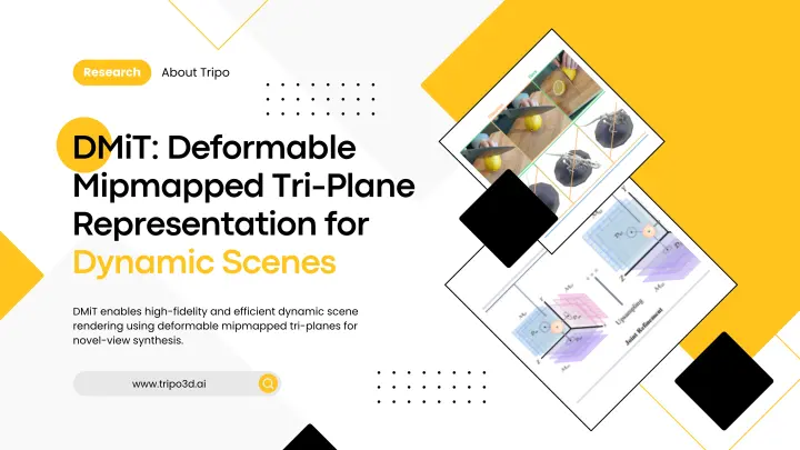 Render dynamic scenes efficiently with DMiT, using deformable mipmapped tri-planes for high-fidelity, multi-resolution novel view generation.