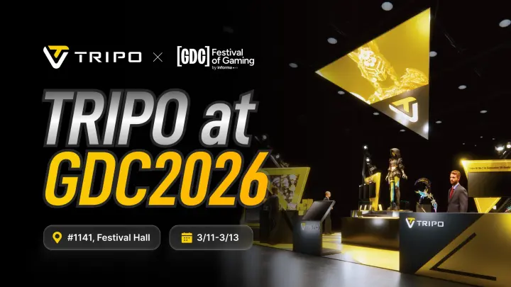 Discover Tripo AI at GDC 2026 at Booth #1141 in Moscone Center. Join live talks, lucky draws, giveaways, and meet the team from March 11–13.