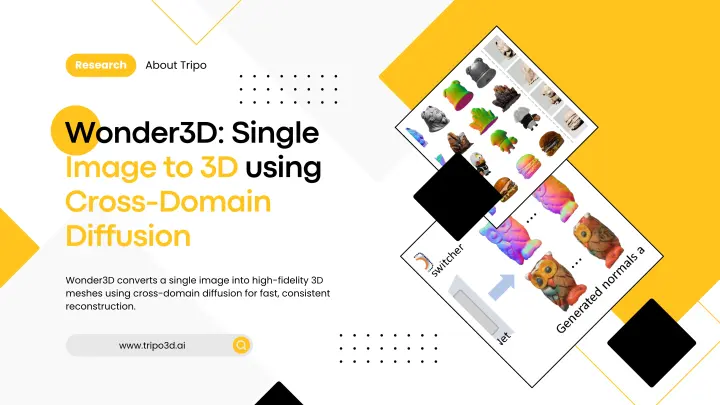 Explore how Wonder3D converts a single image into a high-fidelity 3D textured mesh in just 2–3 minutes using cross-domain diffusion and multi-view normal maps.