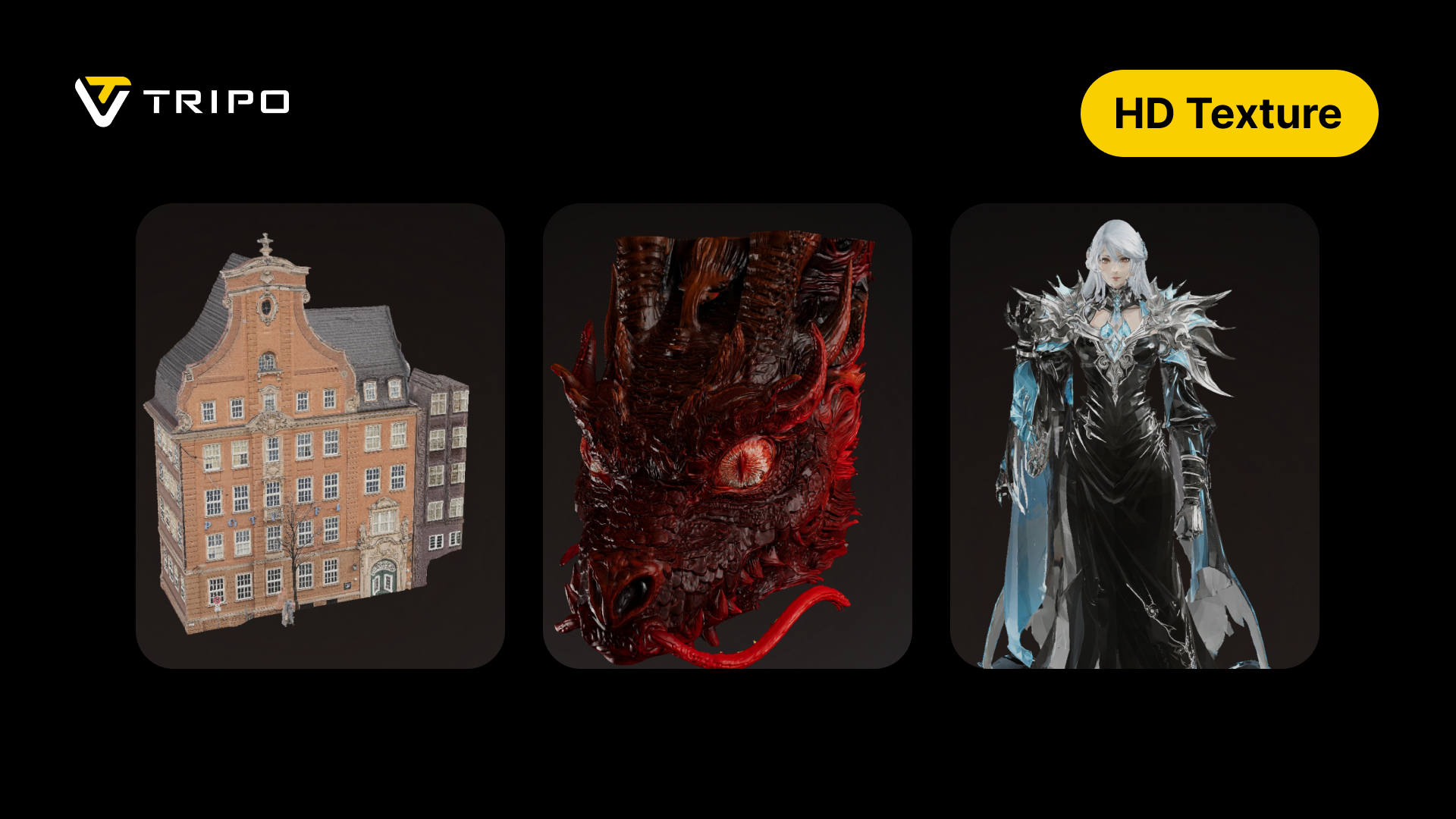 Whether you're working with large architectural models, creatures and characters, hard-surface props, or organic shapes, HD Texture adapts intelligently to each surface. The upgraded engine enhances fine details, restores material depth, and preserves true-to-style rendering across buildings, monsters, humans, animals, and more—ensuring every type of model gets the same industry-leading clarity and realism.