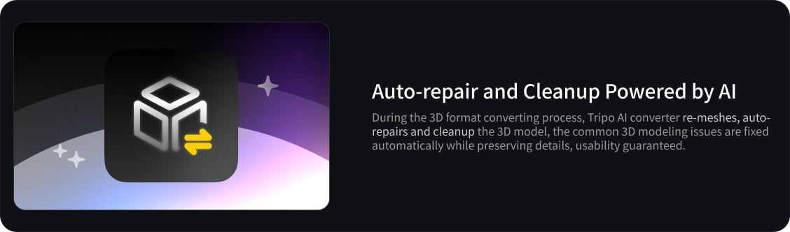 Alongside this release, we're introducing a streamlined 3D Format Converter that lets you convert between major 3D file types in just one click. Whether you're preparing assets for 3D printing, game engines, AR/VR, or DCC software like Blender and Maya, the converter ensures your models stay clean, consistent, and production-ready.