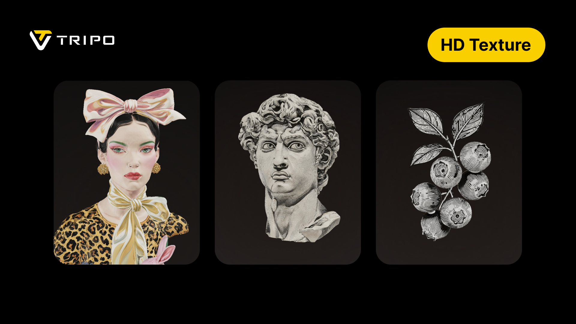All updates are live now! Jump in and experience dramatically shaper textures, smarter rigging tools and a smoother 3D creative working flow from start to finish. Whether you are creating or texturing for game assets, animation, or 3D printing, Tripo gives you the more precise and reliable AI 3D texturing workflow available.