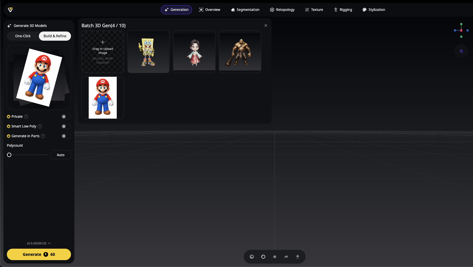 Generate all models simultaneously - Tripo Studio processes up to 10 models in one batch