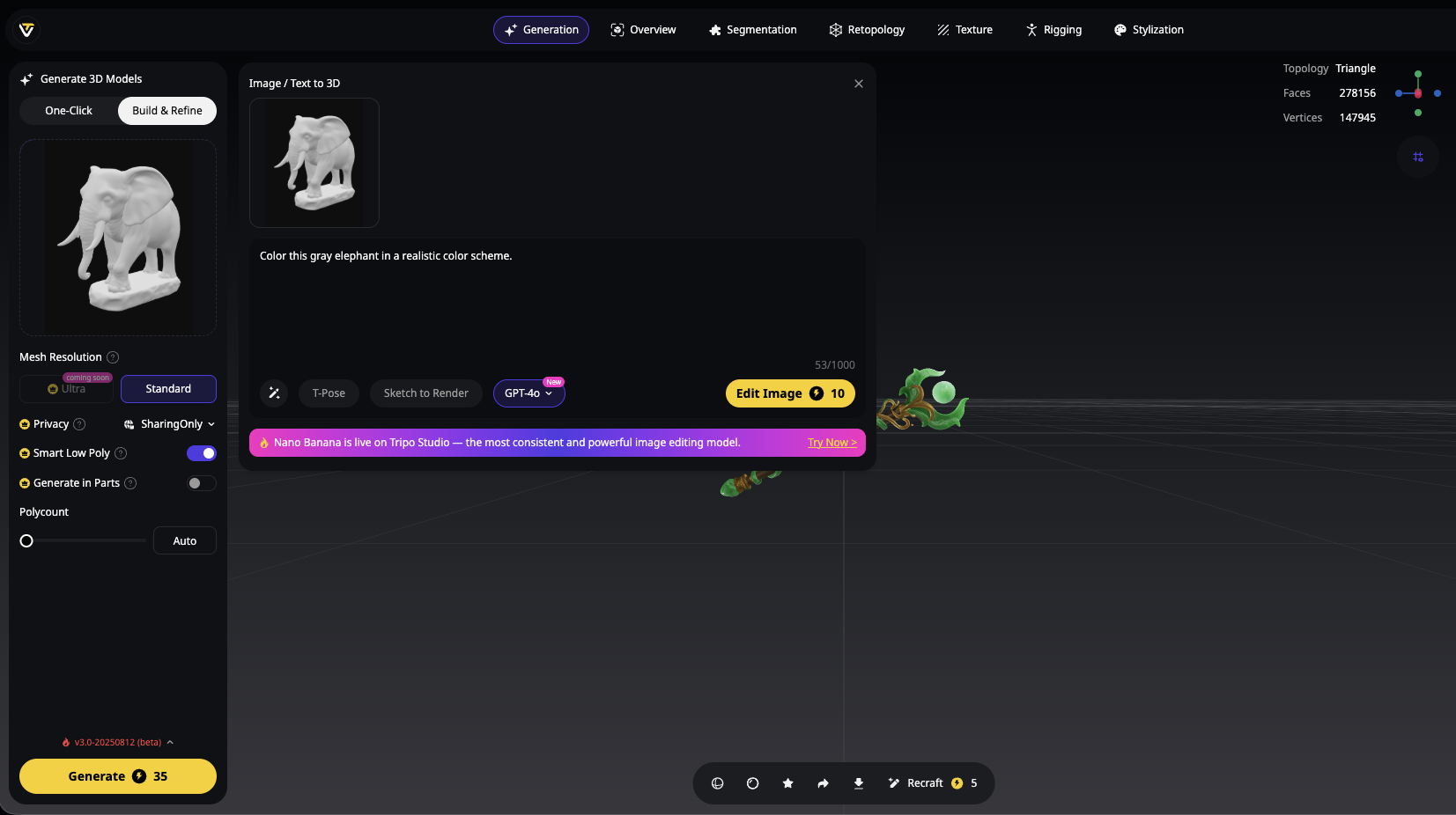 Stop settling for "close enough" in your AI generations. With GPT-4o image generation and editing in Tripo Studio, you finally have the tools to create exactly what you envision, then seamlessly transform those ideas into professional 3D assets.