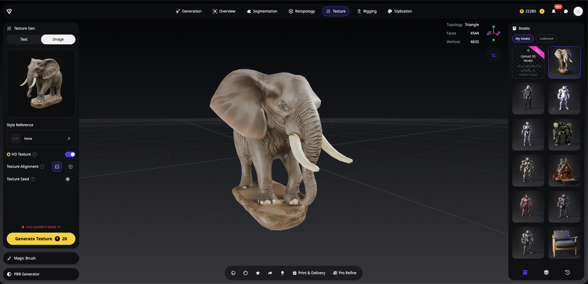 GPT-4o supports multi-turn, prompt-driven edits. Each generation builds on the last, creating a true creative dialogue. When you're ready for pixel-perfect adjustments, Tripo's local tools like Magic Brush can target specific regions for texture preparation.