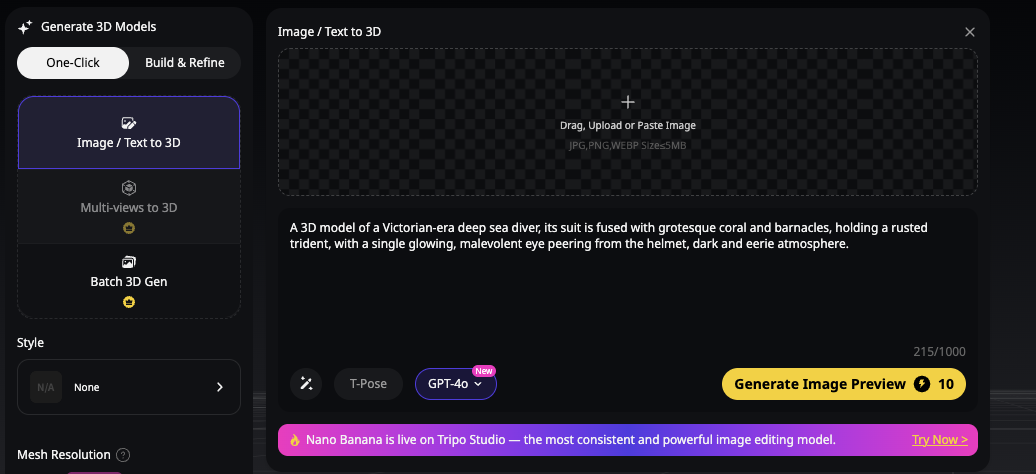 Sometimes you need to start with a blank canvas. Here's how GPT-4o image generation works within Tripo Studio: