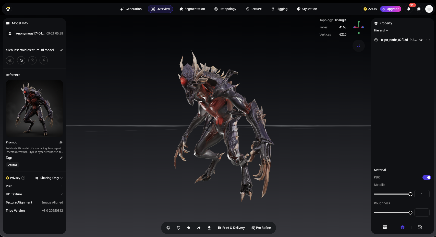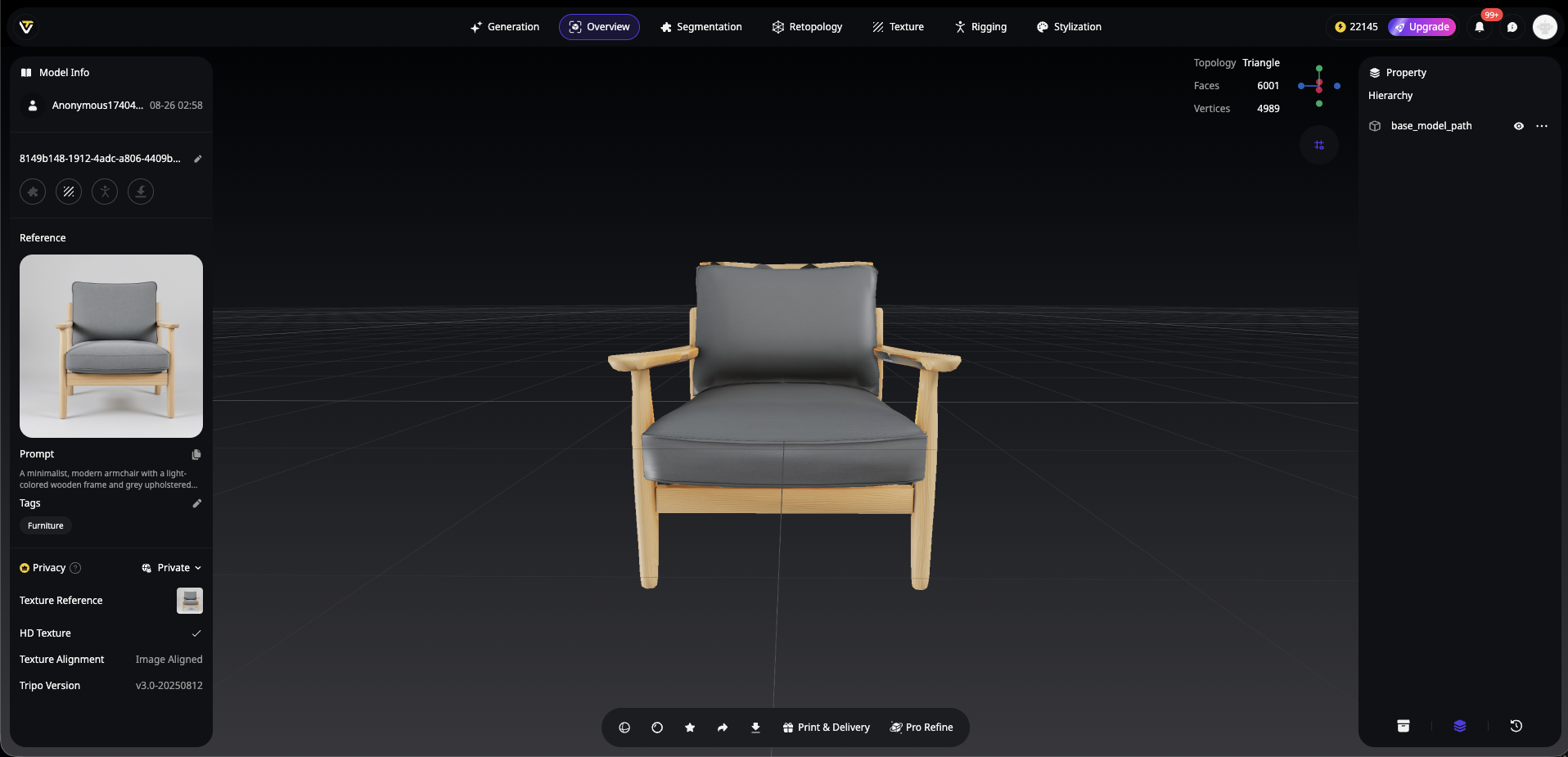 This enriched image gives Tripo's image to 3D algorithm exactly what it needs to create superior models with accurate geometry and convincing PBR textures.