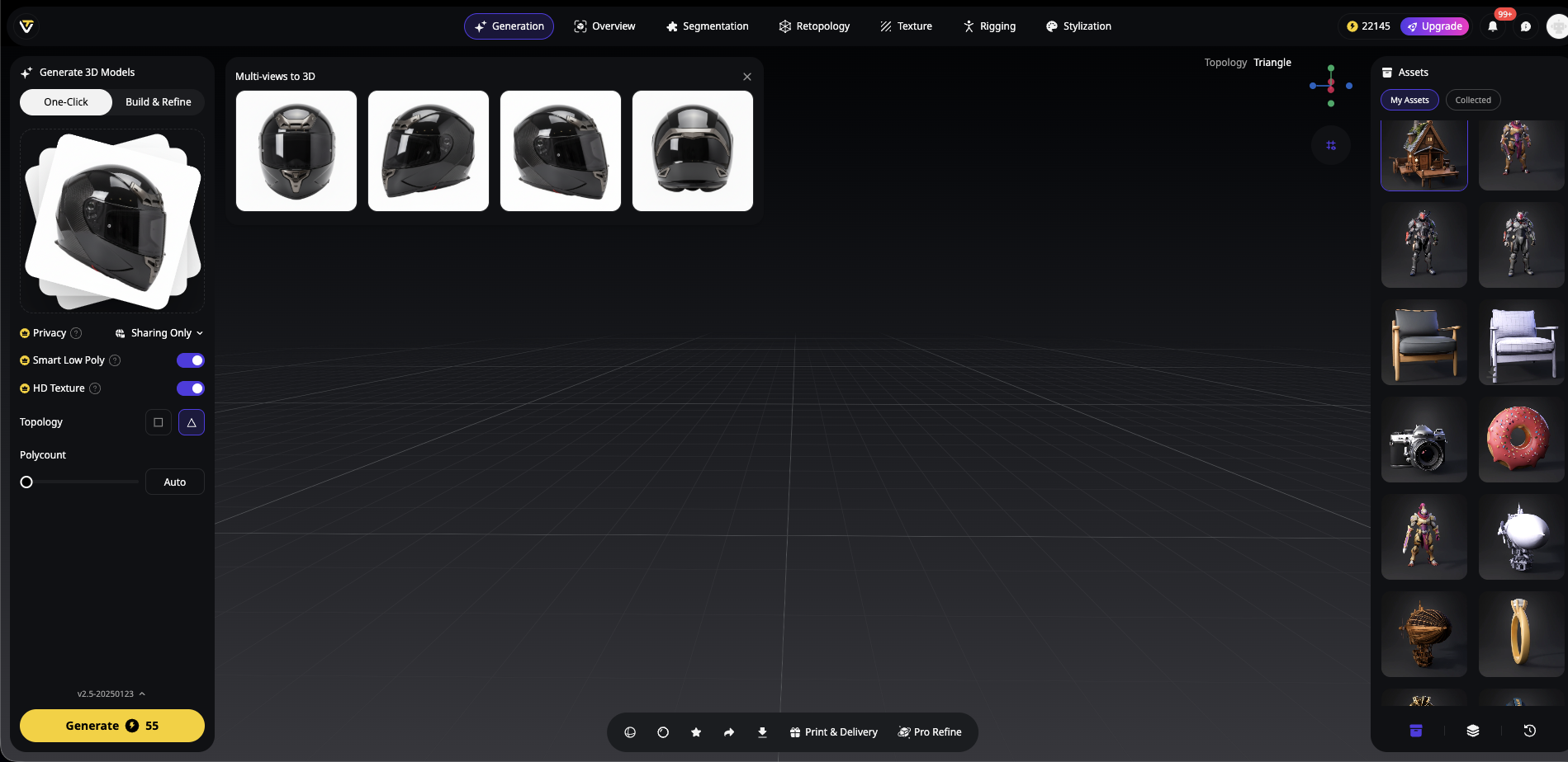 The result? Your simple line drawing becomes a production-ready 3D asset with realistic textures, proper topology, and professional-grade detail—all within the same interface.