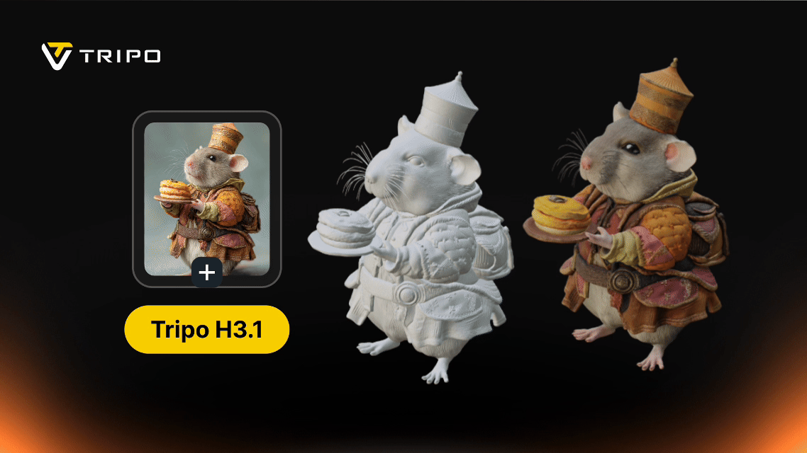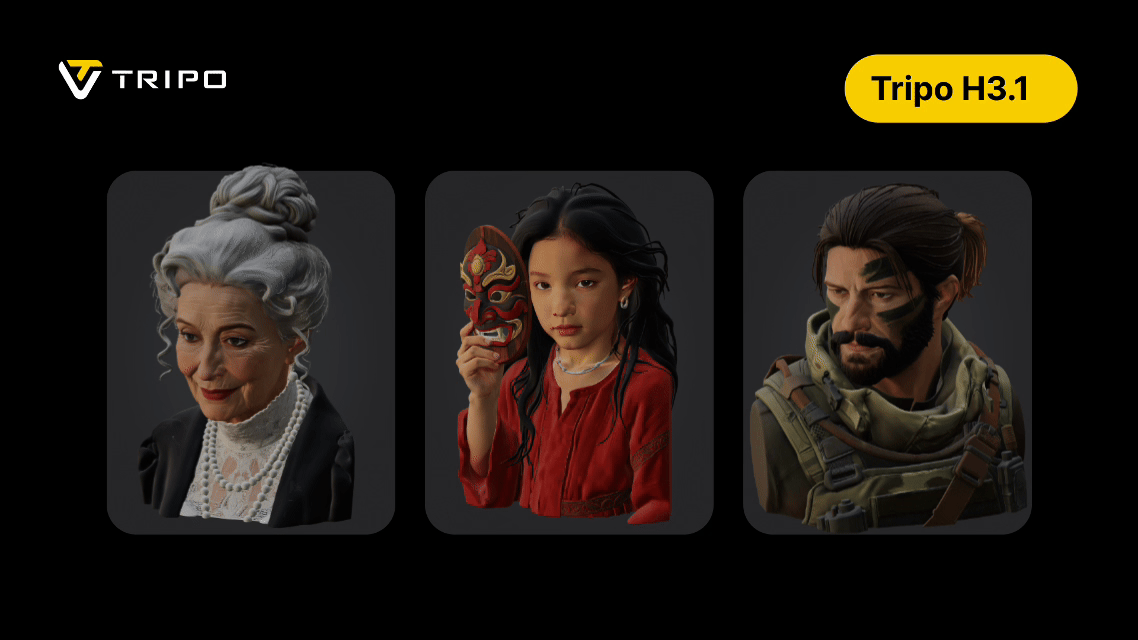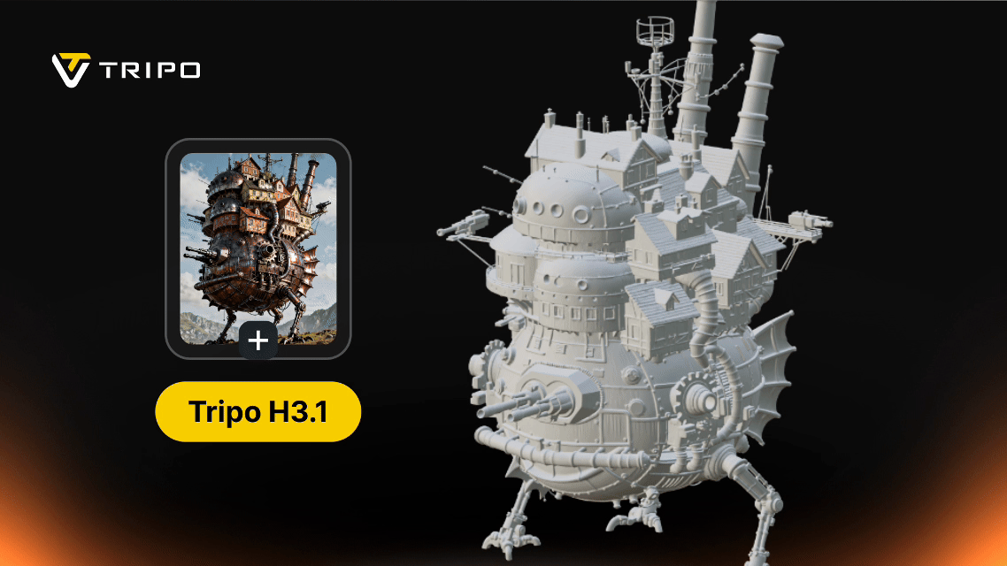 Tripo H3.1 is now available in Tripo Studio, allowing creators to generate high-fidelity 3D assets directly from prompts or reference images.
