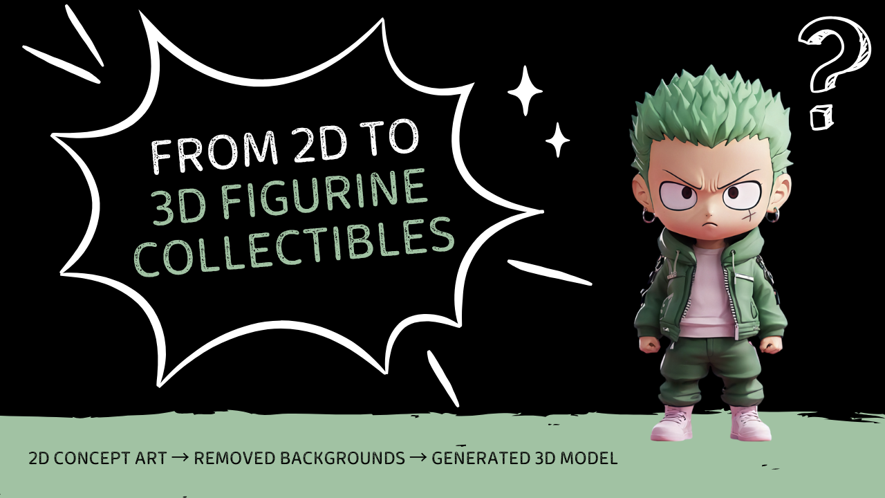 The collectible figurine industry is undergoing a seismic shift, creators now face mounting pressure to deliver innovative designs faster. But AI can help speed up the whole process, taking you from just an idea to a real product faster than ever. In this guide, we'll show you how to use some efficient AI tools to turn your figurine ideas into ready-for-production 3D models——without requiring any specialized skills: Created 2D concept art → Removed backgrounds → Generated 3D model.