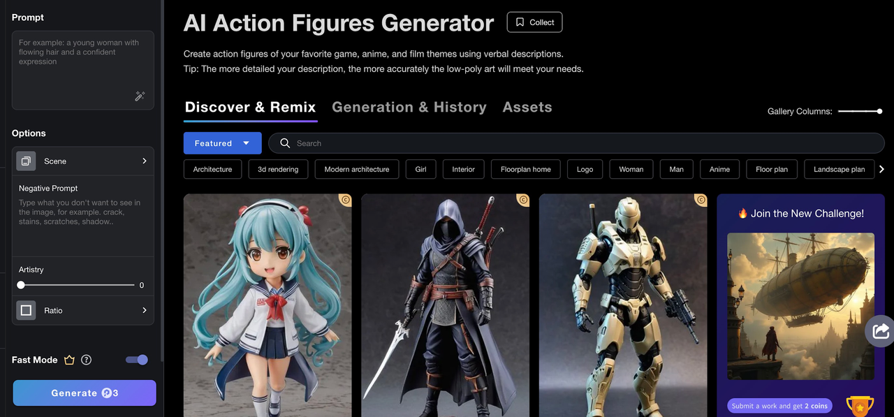 PromeAI's AI Action Figures Generator takes your detailed prompts and turns them into unique 3D figurine images: