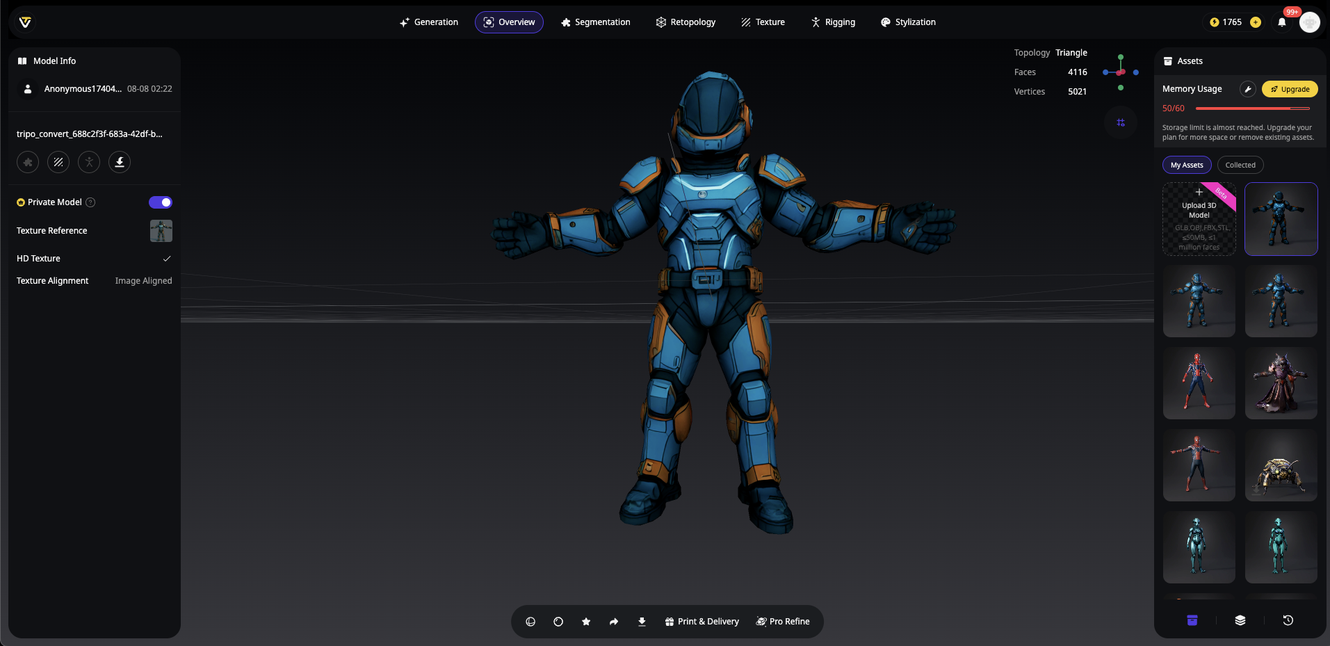 Here's where Tripo AI gives you a massive advantage. Unlike other AI 3D model generators that output characters in A-pose, Tripo Studio offers a built-in T-pose option: