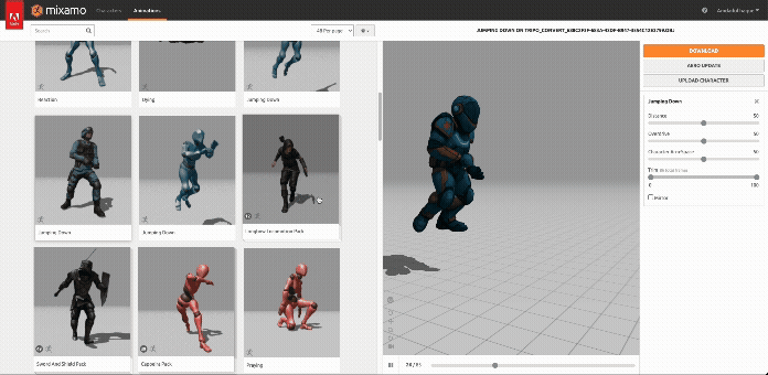 Download multiple animations and blend in your game engine for dynamic characters.