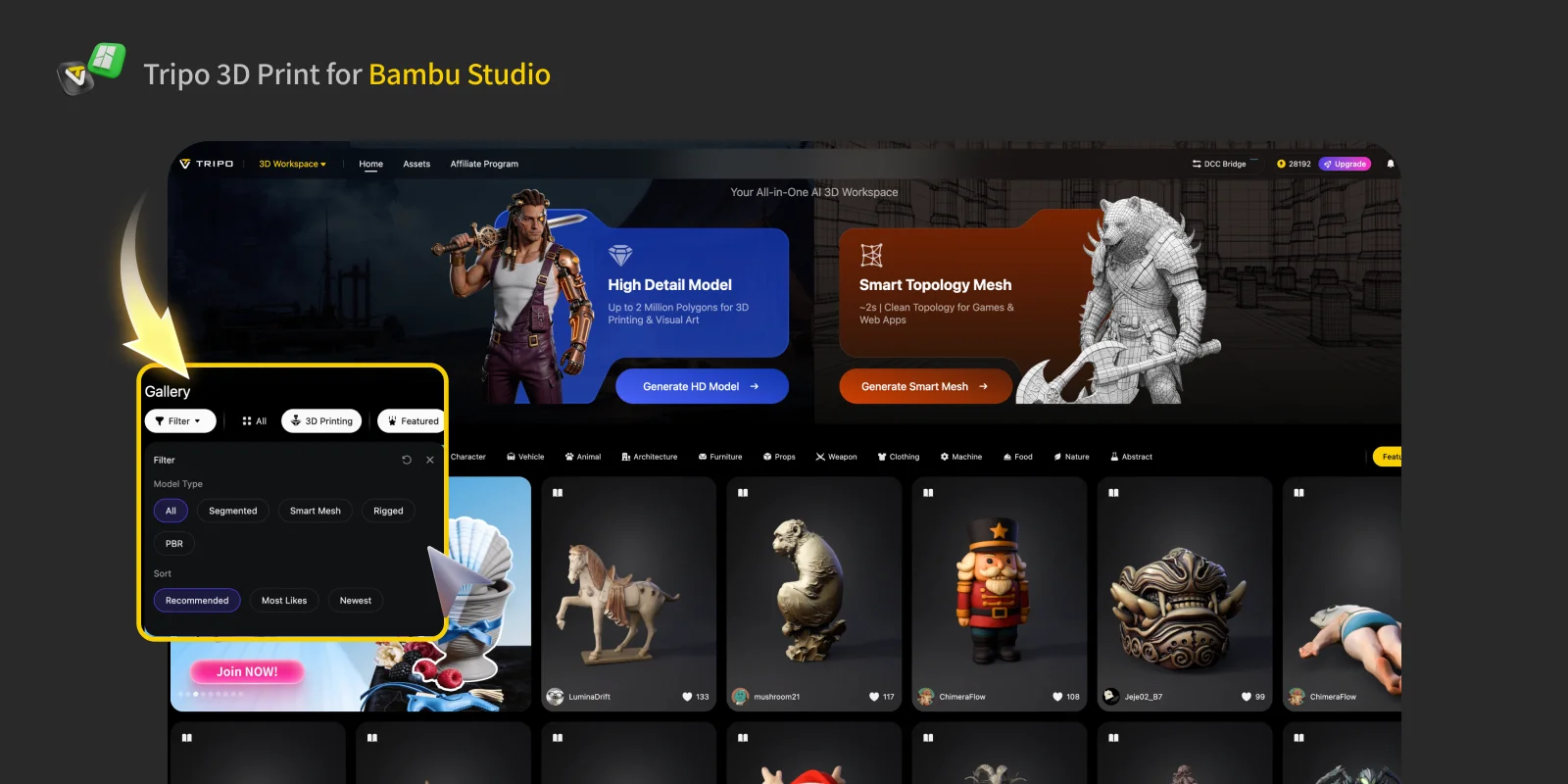 In Tripo Studio, choose either your own model or a model published by another creator in the Gallery.