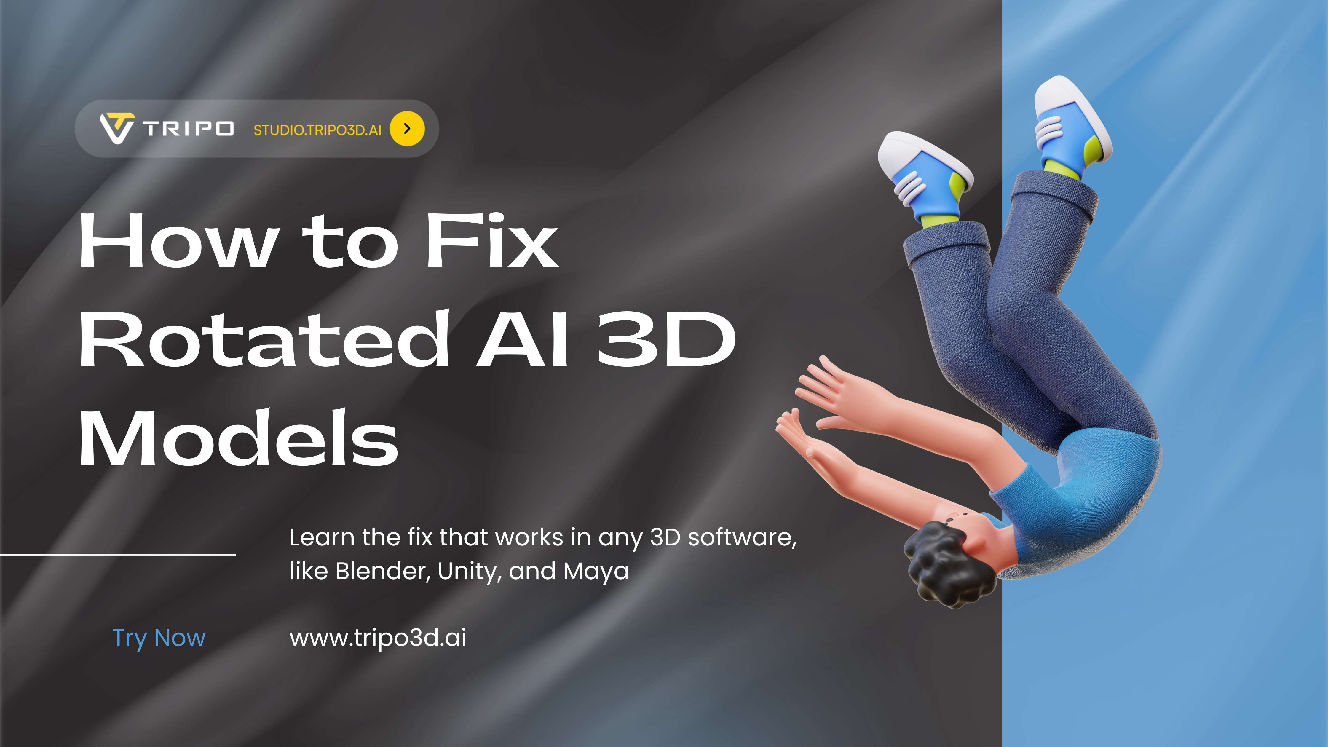 このガイドでは、あらゆる3Dソフトウェアで機能する普遍的な4ステップの修正方法を習得し、Blender、Unity、Mayaに特化した手順を学び、複数のモデルを一括処理する方法を発見し、Tripo AIのような高品質なAI 3Dモデルジェネレーターがこれらの問題を完全に回避するのに役立つ理由を明らかにします。インポートのたびに手動で回転させる必要はもうありません。一度修正すれば、永久に効果が持続します。