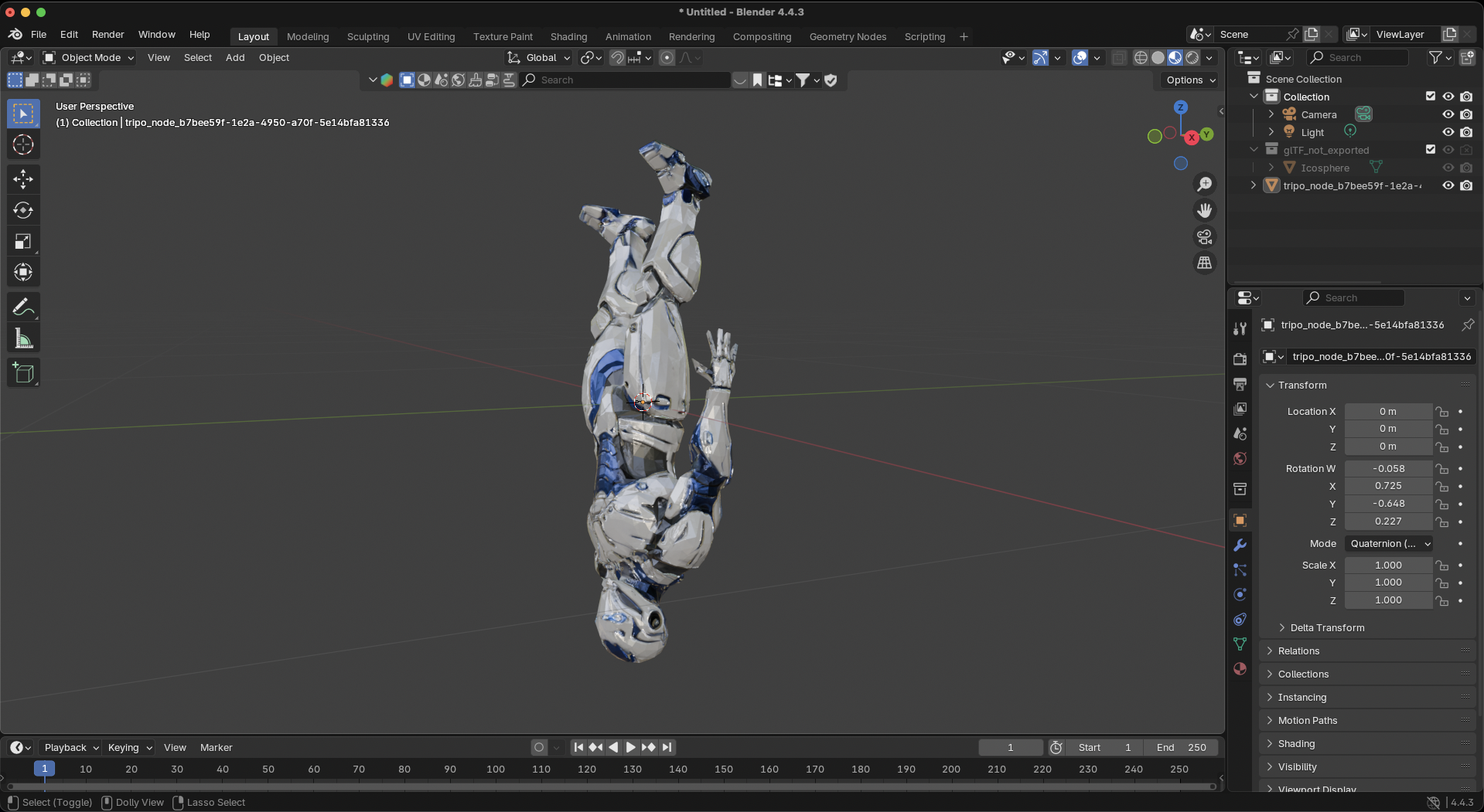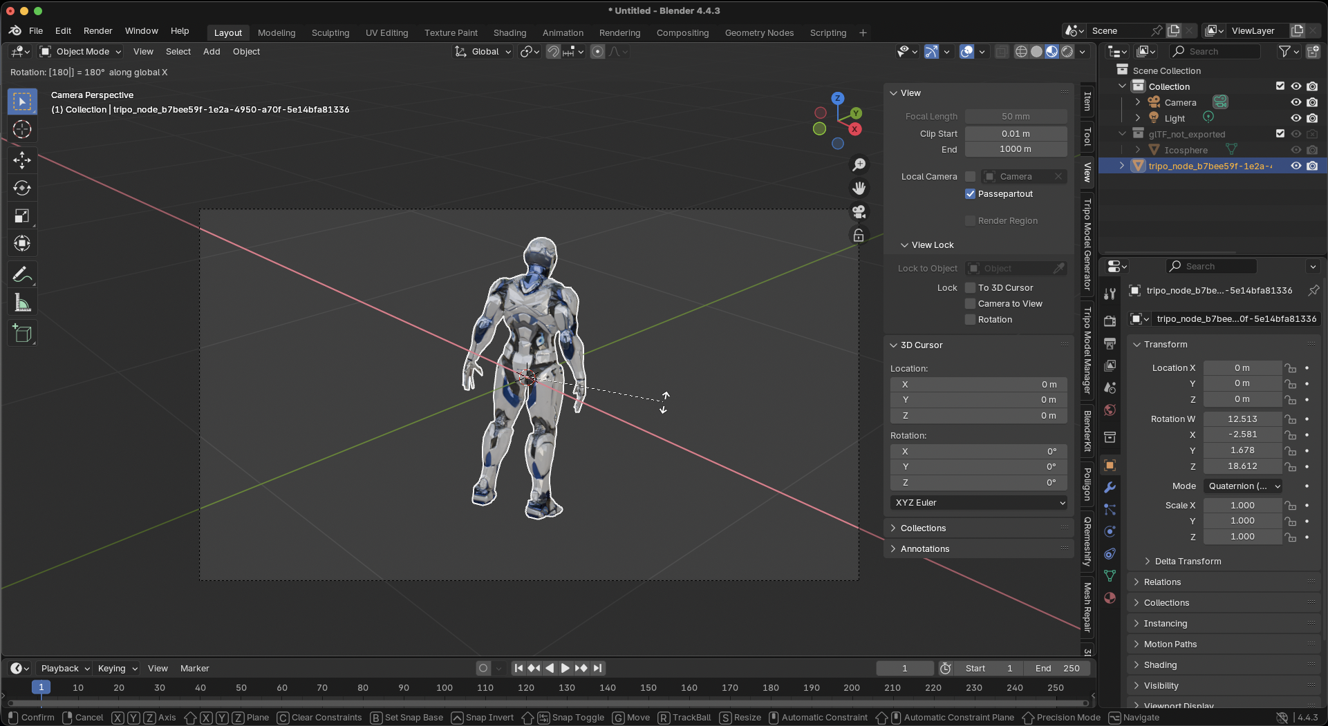 このモデルは完全に上下逆さまになっているため、X軸周りに180度回転させる必要があります。