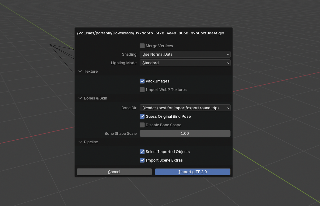 0と入力します。以上です!これでモデルは、手動で回転させる必要なく、どのソフトウェアでも常に正しくインポートされるようになります。