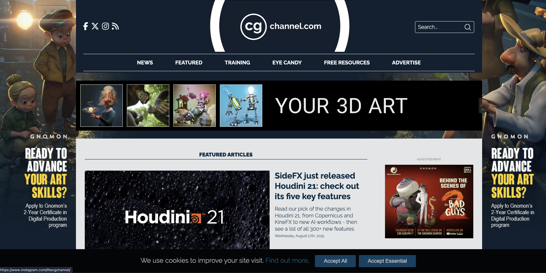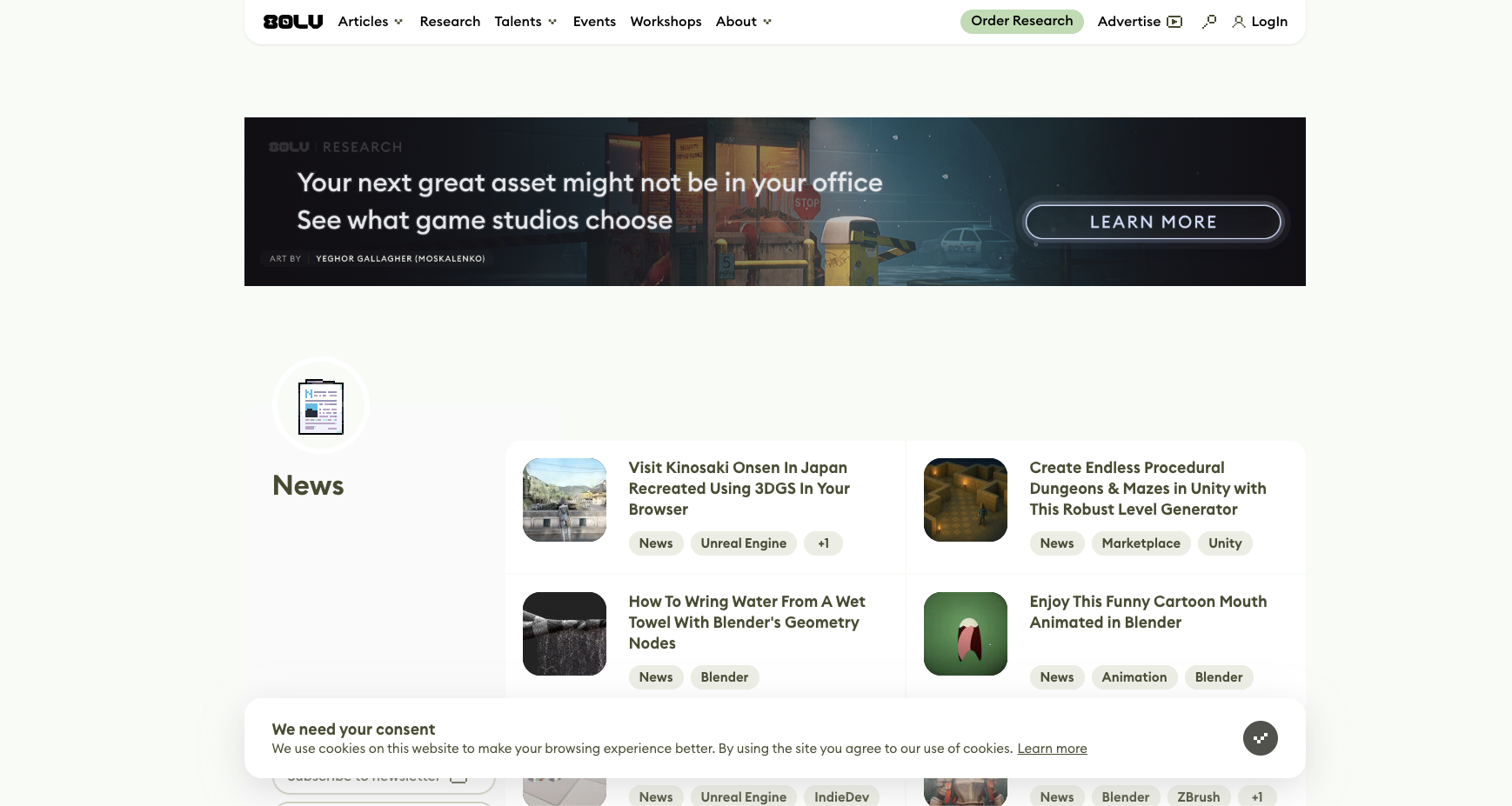 3D 트렌드의 최전선에 머무세요. CG Channel이 다루는 새로운 도구와 기술은 "8K 텍스처", "포토그래메트리", "서브서피스 스캐터링"과 같은 어휘를 소개하여 프롬프트의 품질을 나타냅니다.