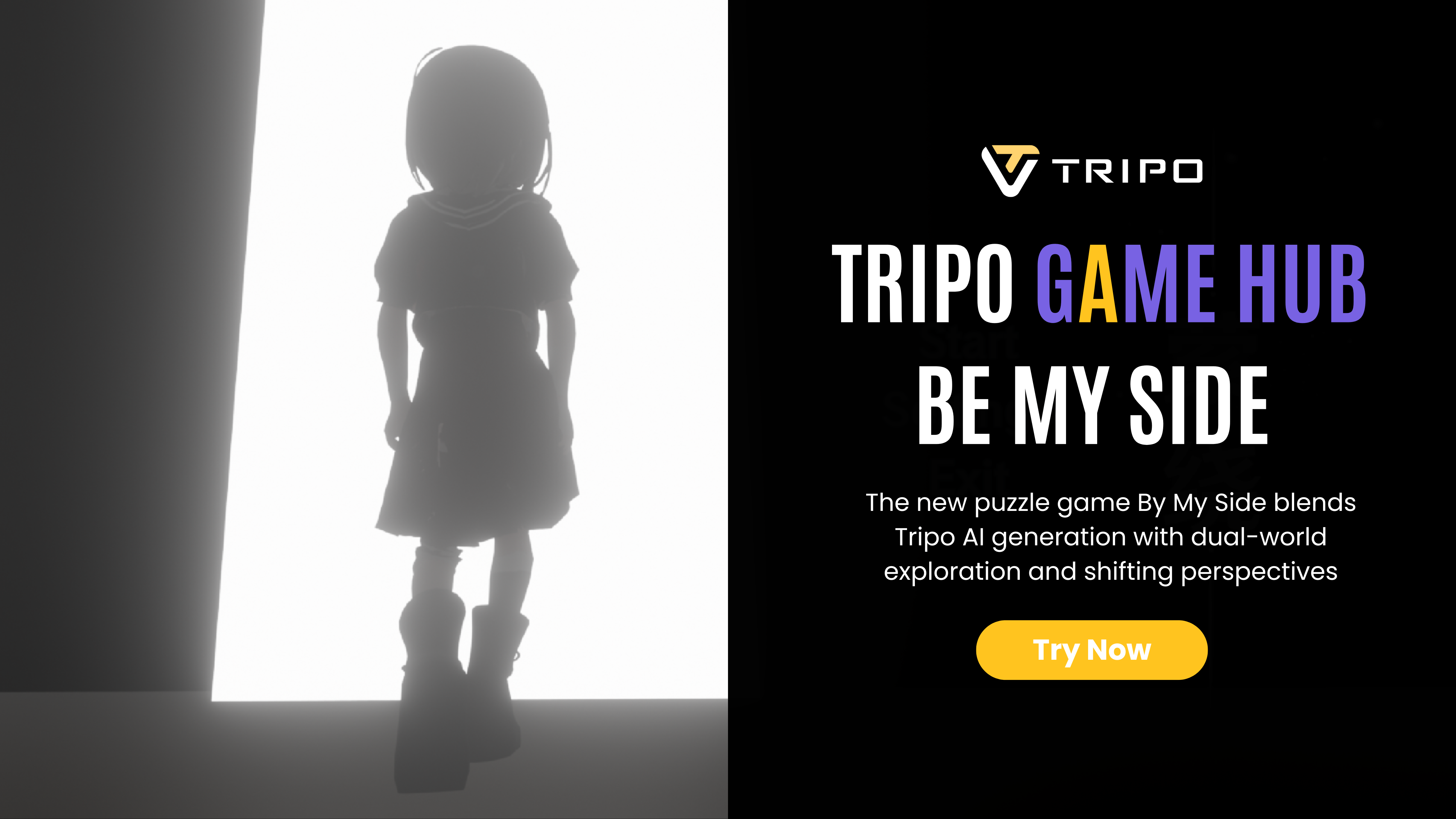 新作《By My Side》融合了Tripo AI生成与双世界探索、视角切换的玩法:玩家交替扮演姐姐小优和已故妹妹小雅(以第二人格形式存在),拼凑破碎的记忆,引导小优走出内心深渊。